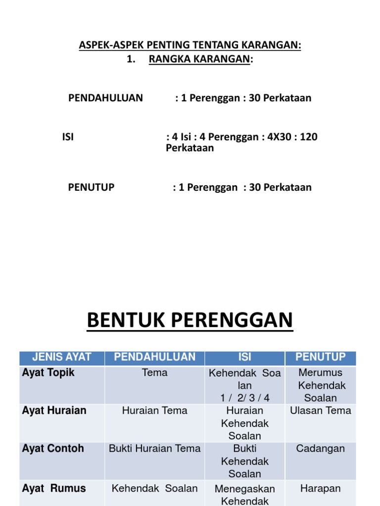Contoh karangan Isi-isi karangan teknik menulis dan kertas percubaan bagi rujukan kepada pelajar UPSR PT3 SPM dan STPM. Kertas 1 Bahasa Melayu Mulai tahun 2021 Kertas 1 mata pelajaran Bahasa Melayu dalam peperiksaan SPM 11031 akan menggunakan format baharu.